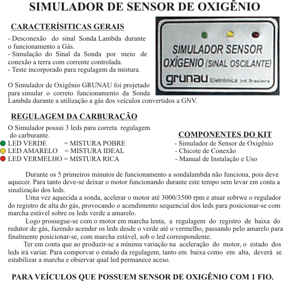 alguns casos como substituto do módulo eletrônico. Desconecta o Sinal da Sonda Lambda durante o funcionamento a Gás e simula o sinal por meio de conexão a Terra com corrente controlada. Recomenda-se que tenha um teste incorporado