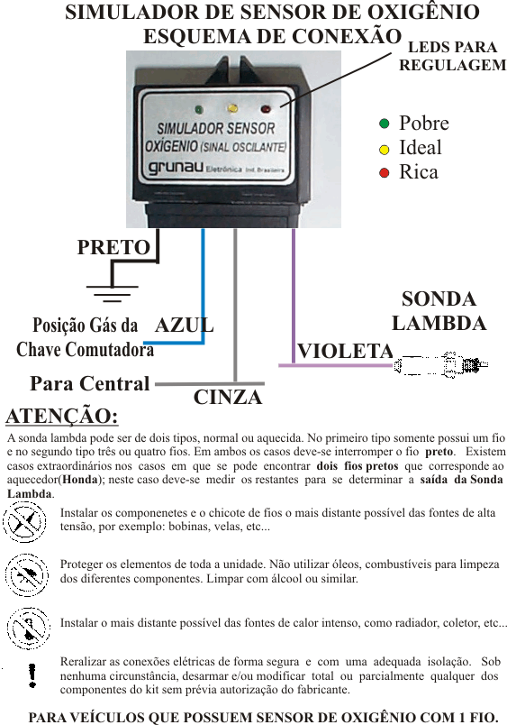 alguns casos como substituto do módulo eletrônico. Desconecta o Sinal da Sonda Lambda durante o funcionamento a Gás e simula o sinal por meio de conexão a Terra com corrente controlada. Recomenda-se que tenha um teste incorporado